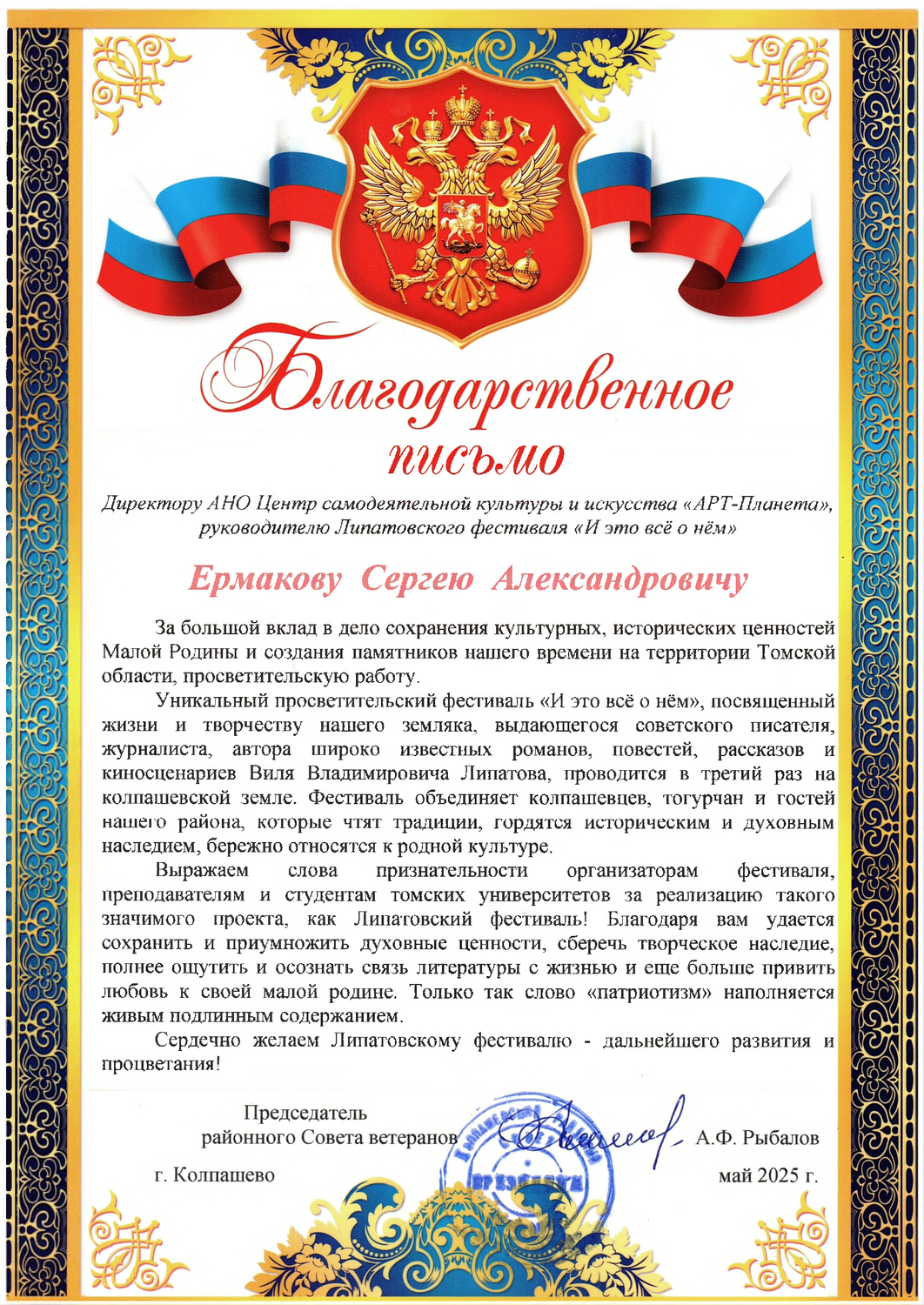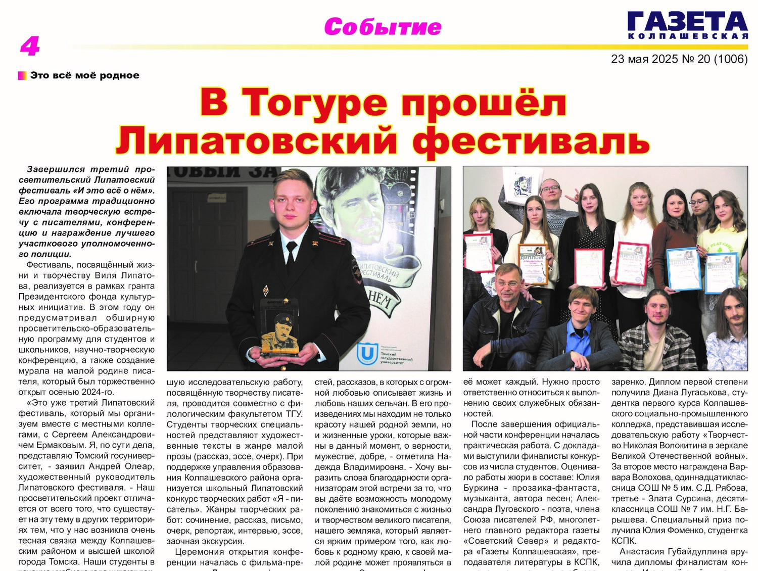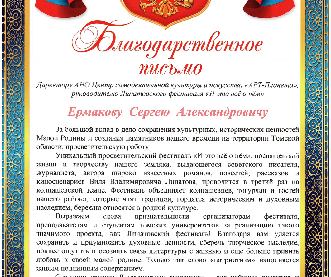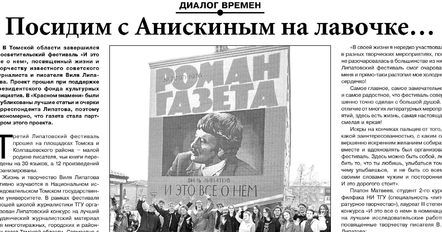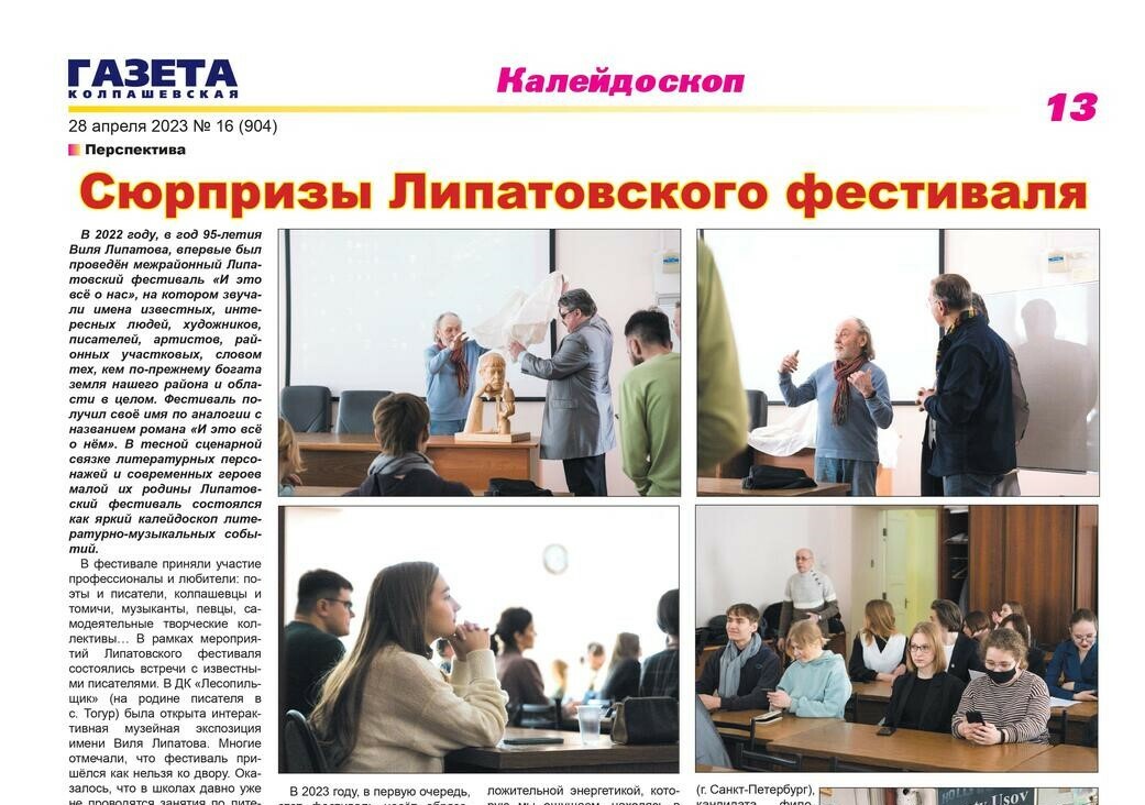Информация по прошедшим Липатовским фестивалям "И это всё о нём" с 2022 года и дополнительных мероприятиях в рамках фестиваля: семинарах и конференциях в НИ Томском государственном университете, Колпашевском социально-промышленном колледже, Тогурской СОШ им. С.В. Маслова