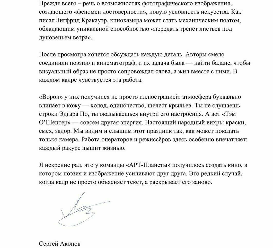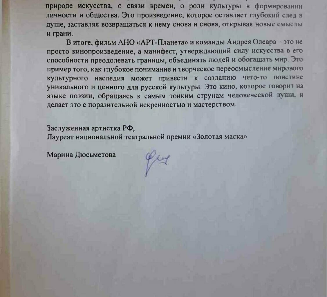 ОТЗЫВЫ от деятелей культуры и кино