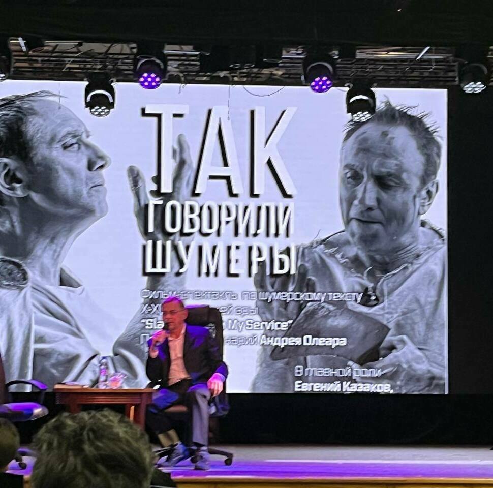 Также Андрей показал свой новый фильм «Так говорили Шумеры». Литературным источником поэмы и сценария на её основе, послужил древне-аккадский текст, пересозданный на английском Иосифом Бродским. Он представляет собой диалог господина и раба, где раб, каждый раз обосновывает утверждения господина, противоположные по смыслу. Этих персонажей играет одновременно один и тот же актер (Евгений Казаков, засл.арт.РФ), а ощущение палимпсеста усиливается за счет фона, где в глубине кадра проявляются узнаваемые архитектурные сооружения – символы различных эпох, от Египетских пирамид до современных небоскребов Нью-Йорка. Т.о. вся история цивилизации разворачивается на наших глазах!