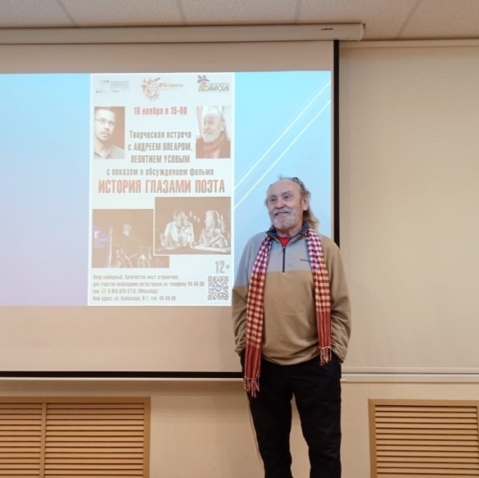 С 13 по 16 ноября 2025 года в стенах Библиотеки «Сибирская» (МАУ «Муниципальная информационная библиотечная система» г. Томска) состоялись творческие встречи с Андреем Олеаром и Леонтием Усовым с показом игрового фильма-кинопоэмы «История глазами поэта», созданного АНО «АРТ-Планета». Показ и последующее обсуждение фильма стали для томичей возможностью не только прикоснуться к шедеврам мировой поэзии в новом формате, но и задуматься над фундаментальными вопросами человеческого существования, осмыслить роль искусства в сохранении памяти и преодолении времени. В целом, после показа и творческой встречи зрители уходили с ощущением прикосновения к чему-то настоящему и глубокому. «История глазами поэта» оставила след в их сердцах, заставив задуматься, почувствовать и, возможно, взглянуть на мир немного иначе – через призму поэзии, где каждое мгновение обретает особую значимость, а обыденное становится источником вдохновения.