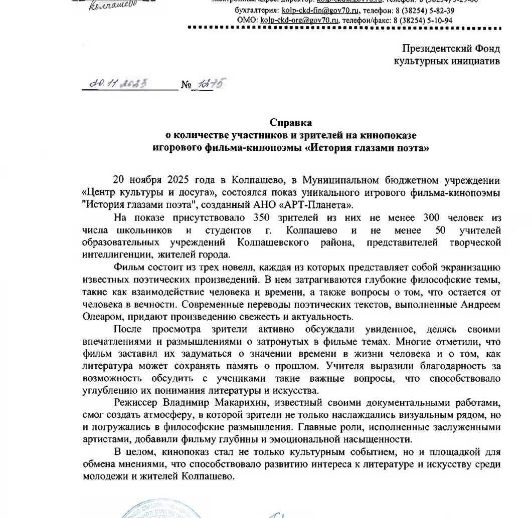 ФОТОРЕПОРТАЖ. В г. Колпашево, 20 ноября 2025 г. в МБУ "Центр культуры и досуга" состоялся показ игрового фильма-кинопоэмы "История глазами поэта".