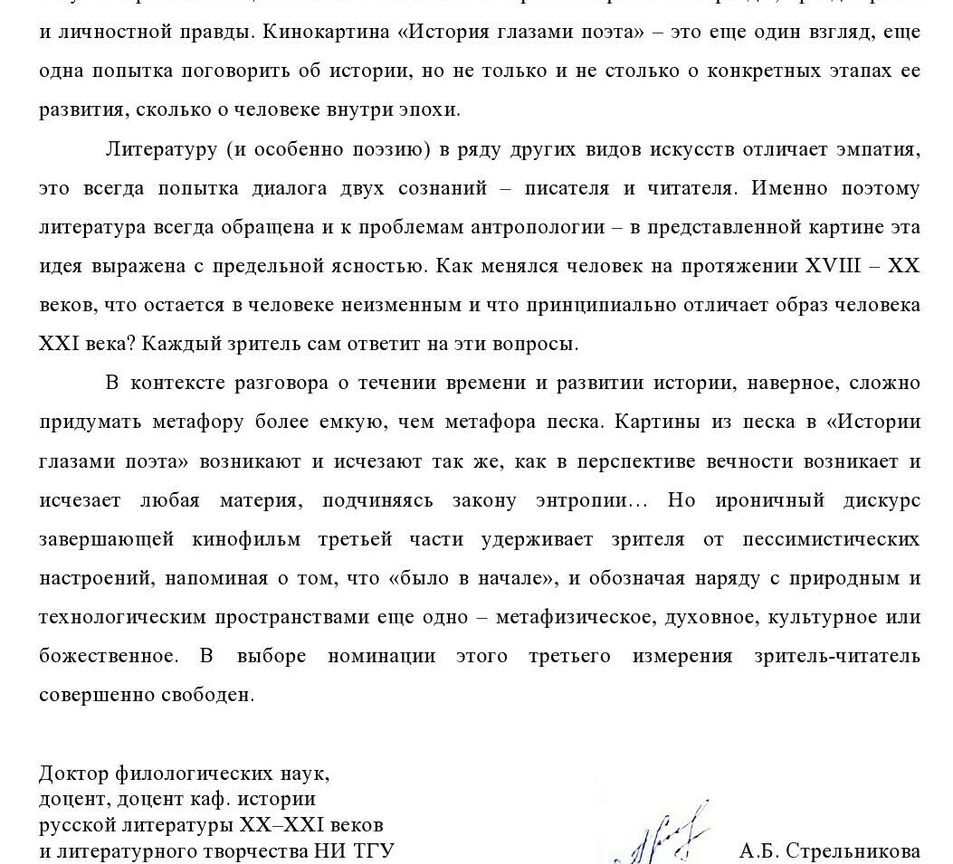 Кинопроект «История глазами поэта» как исследование темы «Человек и Время»